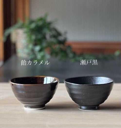 日本製 窯元直送 うす彫りろくべ茶碗・中 飴カラメル 【おうちカフェ おうちごはん】3点