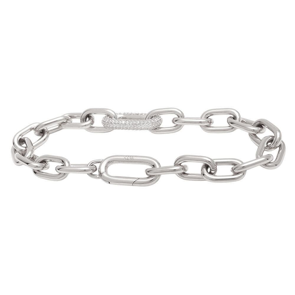 インダストリアルな要素と細部に散りばめられたクリスタルの洗練さが融合し、シルバーリンクブレスレットはこれまでにないチェーンになりました。Crystal Linkコレクションの他のアイテムと合わせても、単体でも、主役級のパワフルなチェーンです。